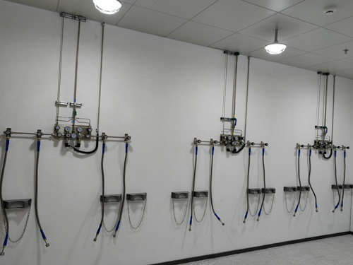 1.氣瓶間內水壓調理面板開關與工作室內外的氣路末端彼此應用SS316LBA管做對接,地埋管內表皮晶亮度為Ra<0.4umBA級地埋管。